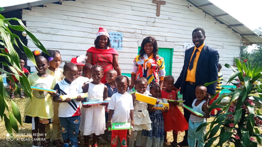 The nursery and primary school children singing the school anthem : “Burdens Are Lifted At Calvary”