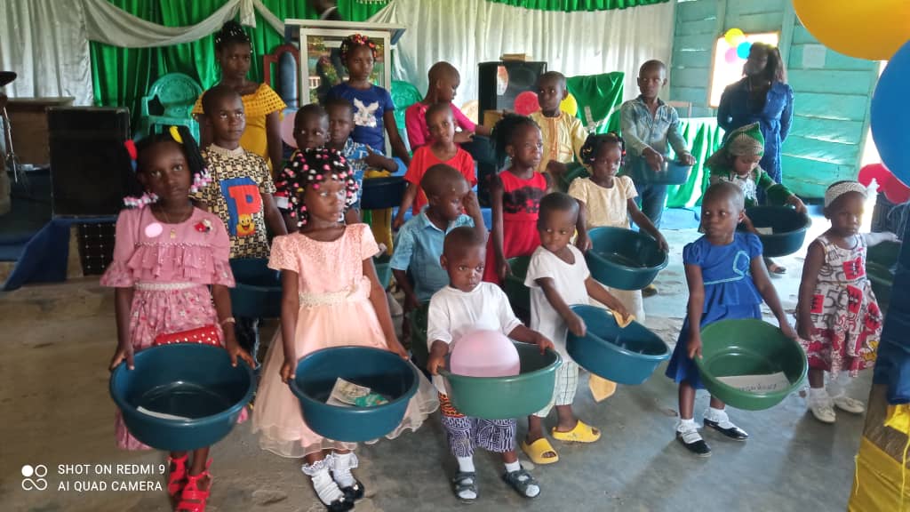 In the picture above, is the first attendees of Calvary Learning Center Nursery and primary school at the end of the schools first year in existent event. Each child received a gift (suggested by a joint parent-teacher meeting.) The parents have been very involved in the school and we are grateful for that as we encourage them to continue tutoring the children at home.
